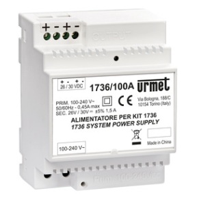 2fils alimentation locale pour kit 1736/511,Fixation murale,Dimensions : 199 x 185 x 33 mm,Caméra couleur grand angle : H : 110°,Commande de verrouillage : 12 Vcc/Vca, Commande de portail : 1 A à 30 Vcc