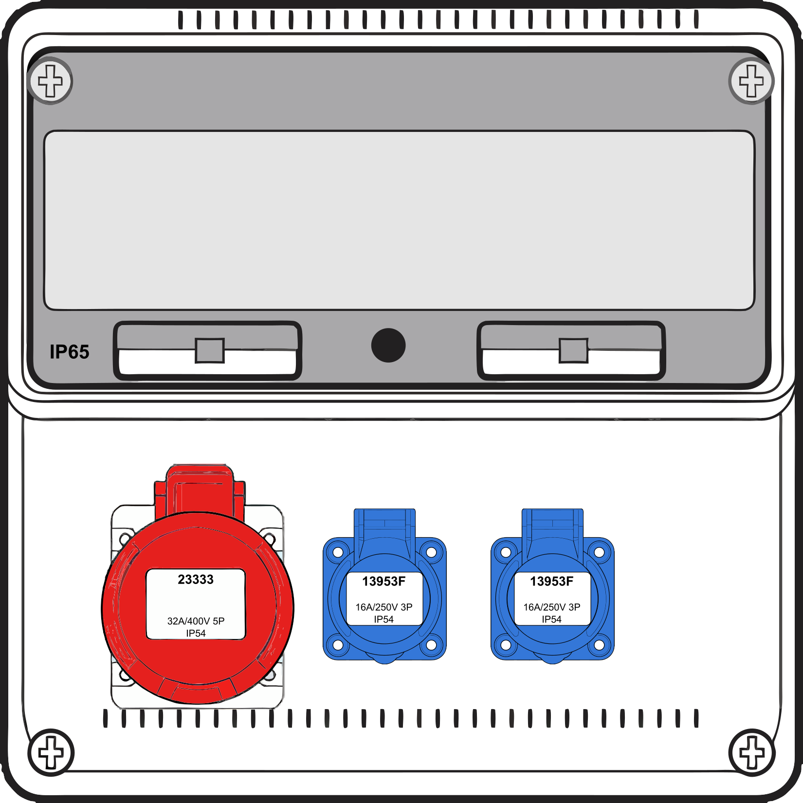 Boîte murale combi Medium - 1x 32A 5P 400V + 2x mono 230V - int + disj (3) - 10kA