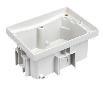 Boîte d'encastrement double (163 x 115 x 81 mm) en plastique sans halogène pour utilisation dans les sols pleins (béton), finition grise. Équipé d'un système de drainage pratique pour éviter la condensation. A utiliser en combinaison avec le double support de mécanisme IP66 qui accueille 2x modules K45 et 1x découpe étroite K45.