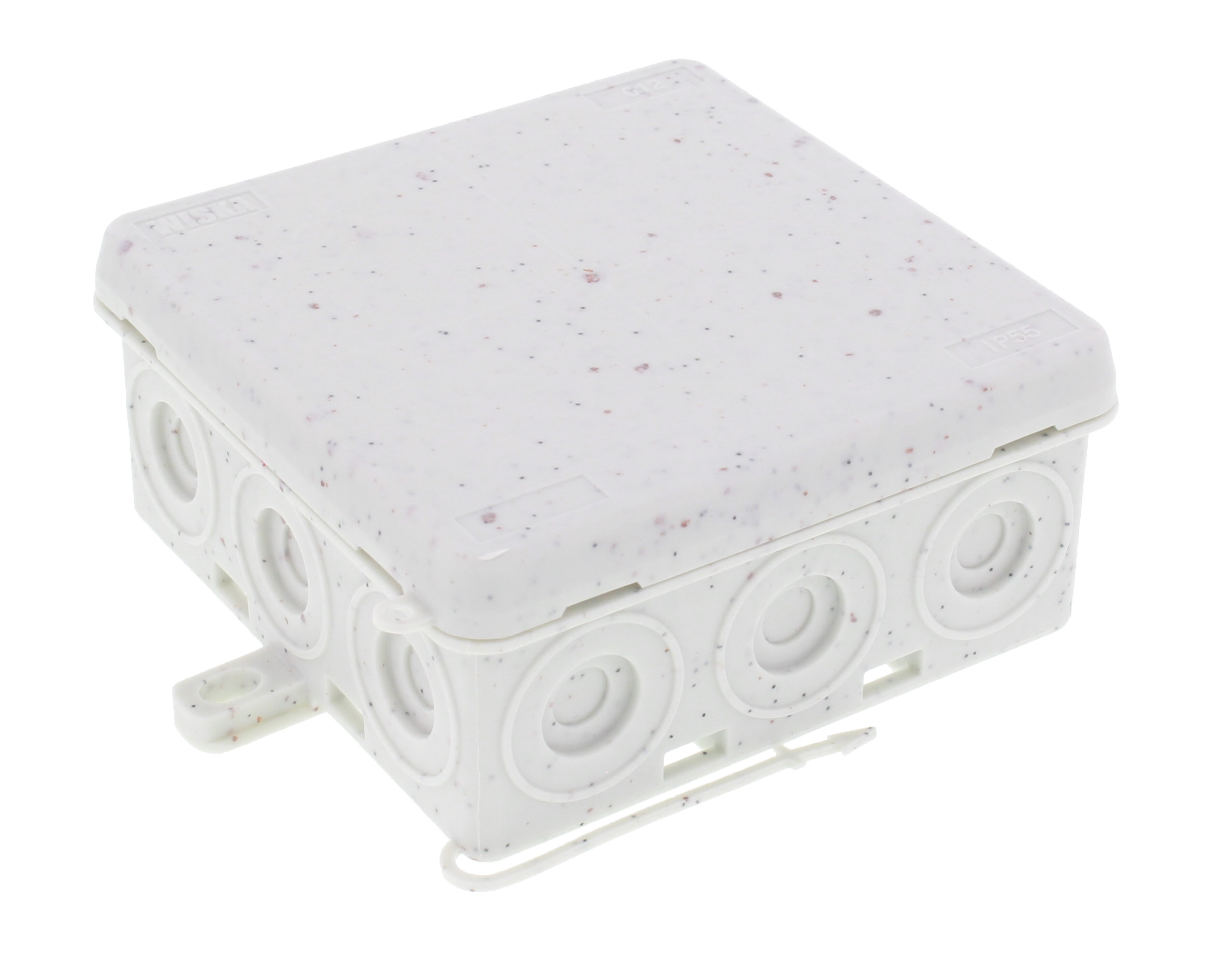 Boîte de jonction de câbles résistante à l'humidité en bioplastique avec une large gamme d'options de montage.Convient également aux installations extérieures protégées.Grâce à sa flexibilité, le boîtier de la boîte à lumière permet un montage sûr, même sur des surfaces irrégulières. Grâce au couvercle rigide, la boîte reste stable sur le plan dimensionnel et se ferme fermement et en toute sécurité. L'objectif de cette nouvelle boîte de dérivation est de créer un cycle fermé de CO2.