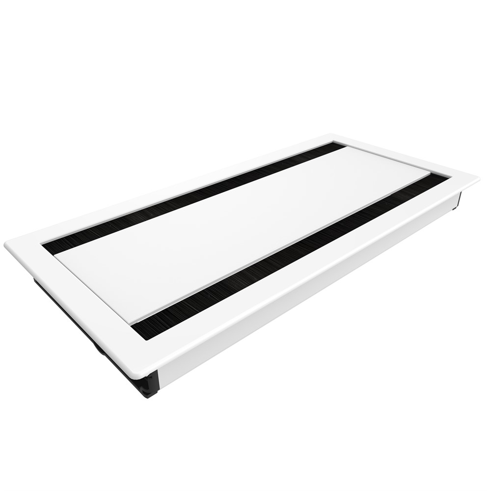 Rechthoekige kabeldoorvoer met dubbelzijdige opening. Formaat: 319x154mm, Materiaal: aluminium. Kleur wit