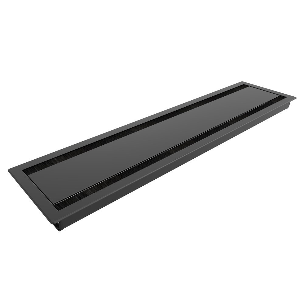 Rechthoekige kabeldoorvoer met dubbelzijdige opening. Formaat: 619x154mm, Materiaal: aluminium. Kleur zwart
